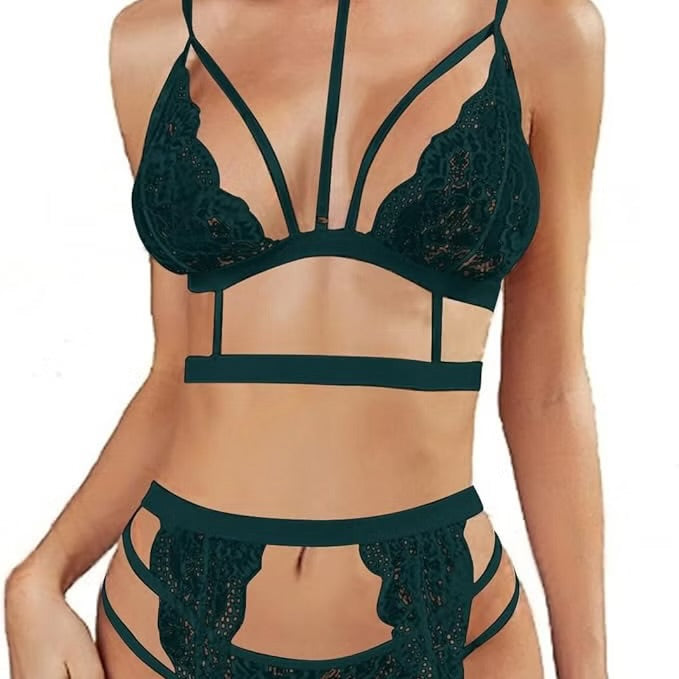 Exotic Bondage Cut Out Halter Gartier Set Royal Blue
